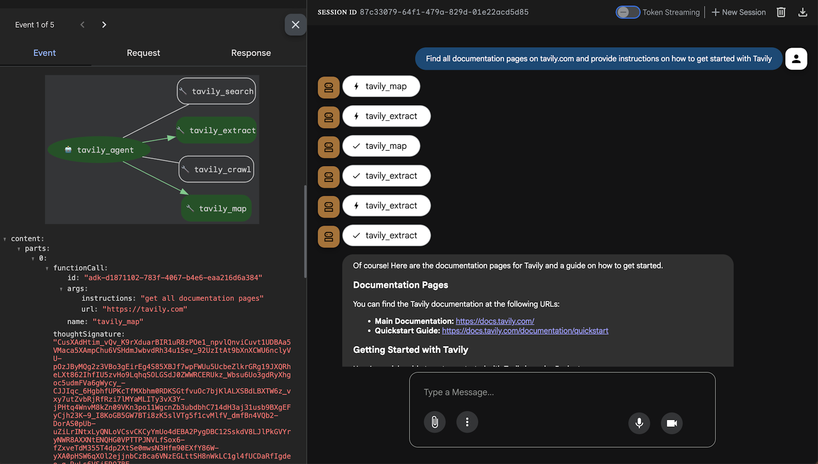 智能体会自动调用多个 Tavily 工具以提供全面的答案,使得在无需手动导航的情况下轻松浏览网站和收集信息: